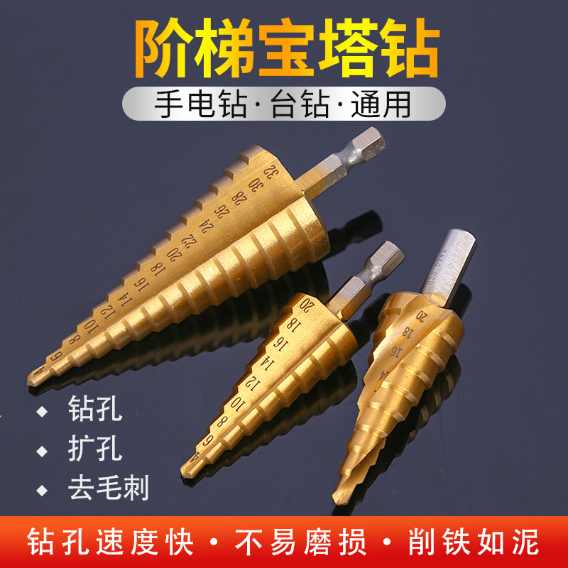 阶梯宝塔钻直槽螺旋槽六角柄三角柄宝塔钻高速扩孔打孔钻头去毛刺
